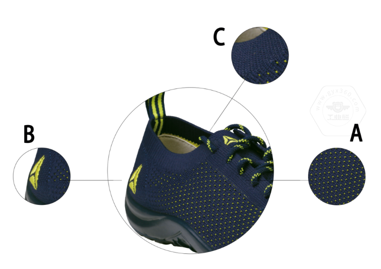 三種針織方式,以適應(yīng)鞋幫調(diào)整受力