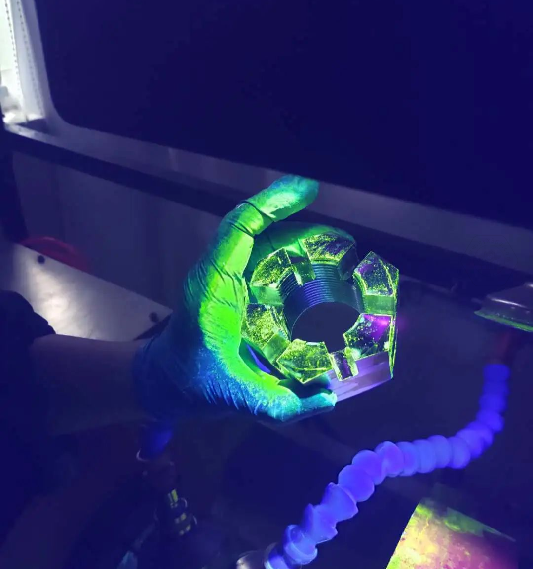 通過(guò)GJB 2028A-2007《磁粉檢測(cè)》標(biāo)準(zhǔn)可知,磁粉檢測(cè)可發(fā)現(xiàn)表面及近表面缺陷(如裂紋、夾雜、發(fā)紋、折疊、分層、白點(diǎn)、未焊透、疏松、氣孔、冷隔等表面及近表面的不連續(xù)性)的檢測(cè),能直觀顯示缺陷的形狀、位置和大小,并可大致判斷缺陷的性質(zhì),具有很高的檢測(cè)靈敏度。