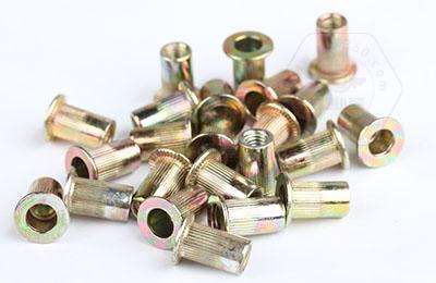 • 4.8級(jí)鍍彩平頭圓柱豎紋鉚螺母GB17880.1