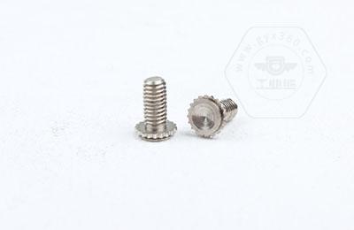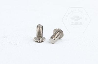 在使用過程中需在基體上開一個小孔,將壓鉚螺釘放入孔內(nèi),采用鉚壓設(shè)備平行的均勻的在頭部平壓,因壓鉚螺釘?shù)念^部下有齒紋壓花,當壓入后,基體在壓鉚螺釘?shù)闹車a(chǎn)生變形,和齒紋發(fā)生咬合現(xiàn)象,從而形成一個牢固的外螺紋。