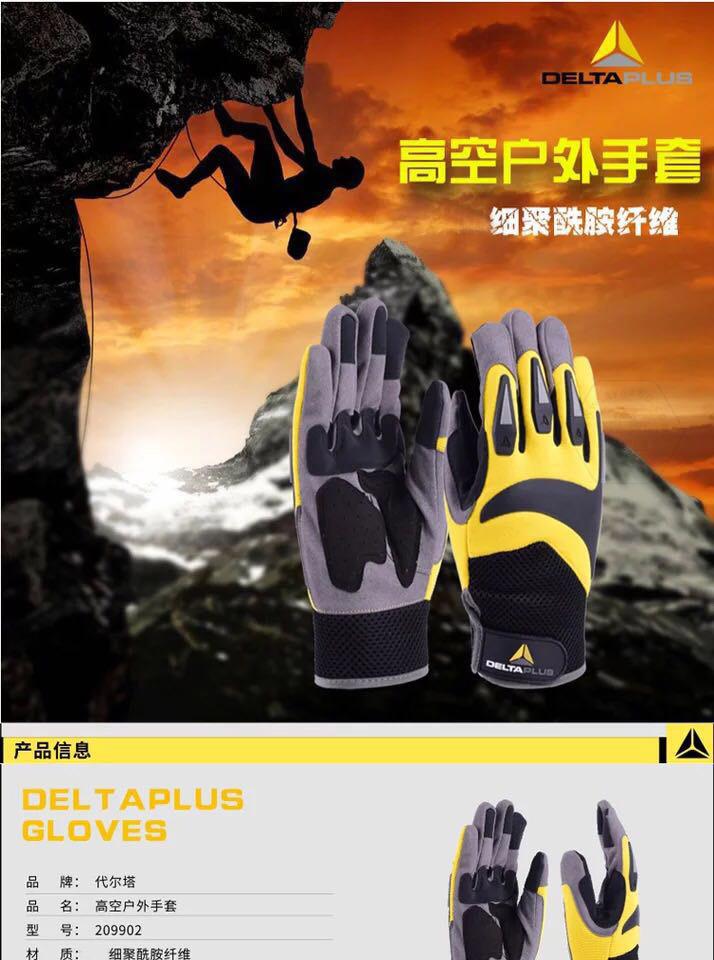 商品名稱:代爾塔 高空戶外運(yùn)動手套 適用于攀巖繩索作業(yè) 耐磨防護(hù)透氣舒.適安.全騎行 209902 黃/黑色 一副(2只)
