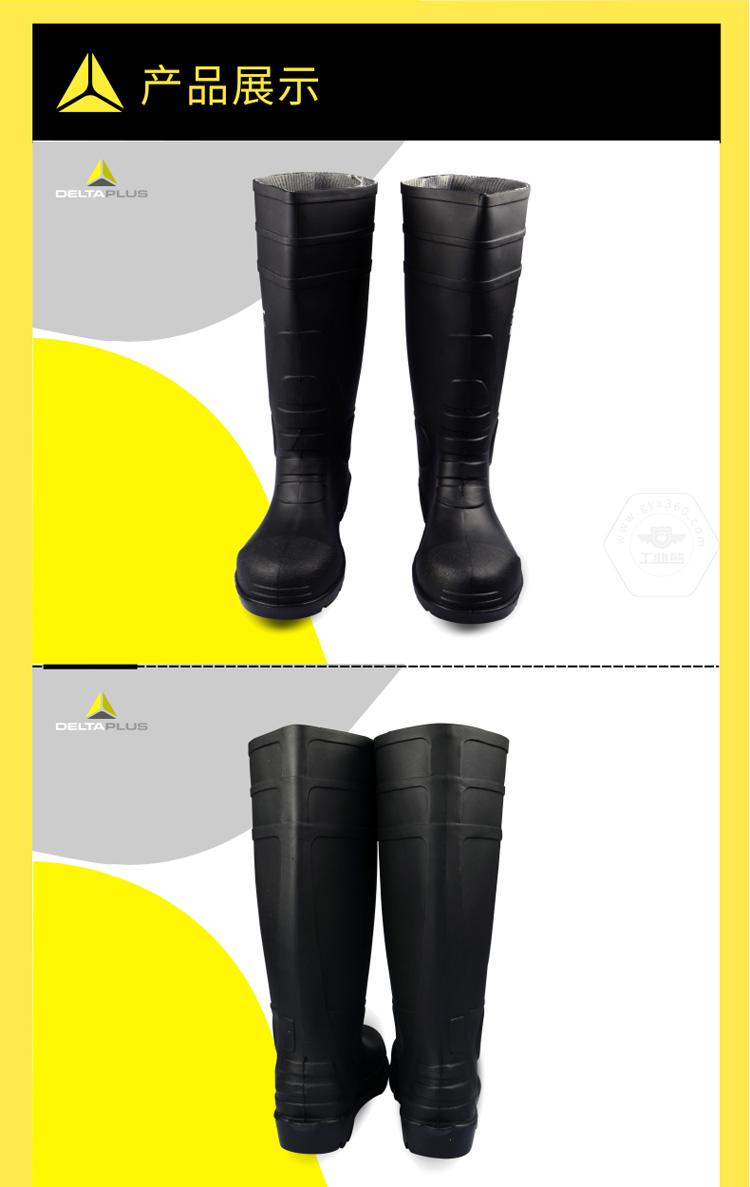 商品名稱:代爾塔 勞保鞋雨鞋 高幫安.全鞋 耐酸堿 PVC防水防滑雨靴 防砸防穿刺 301407 黑色